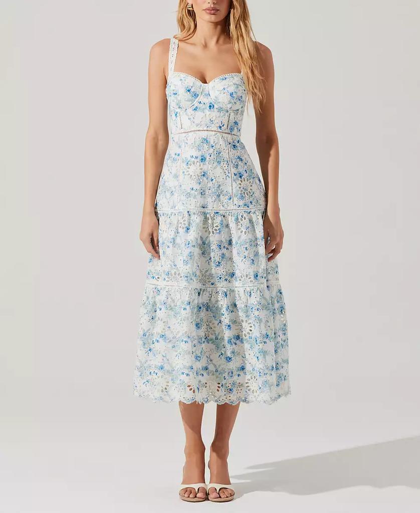 Women's Ivanna Floral Lace-Trim Sweetheart Maxi Dress