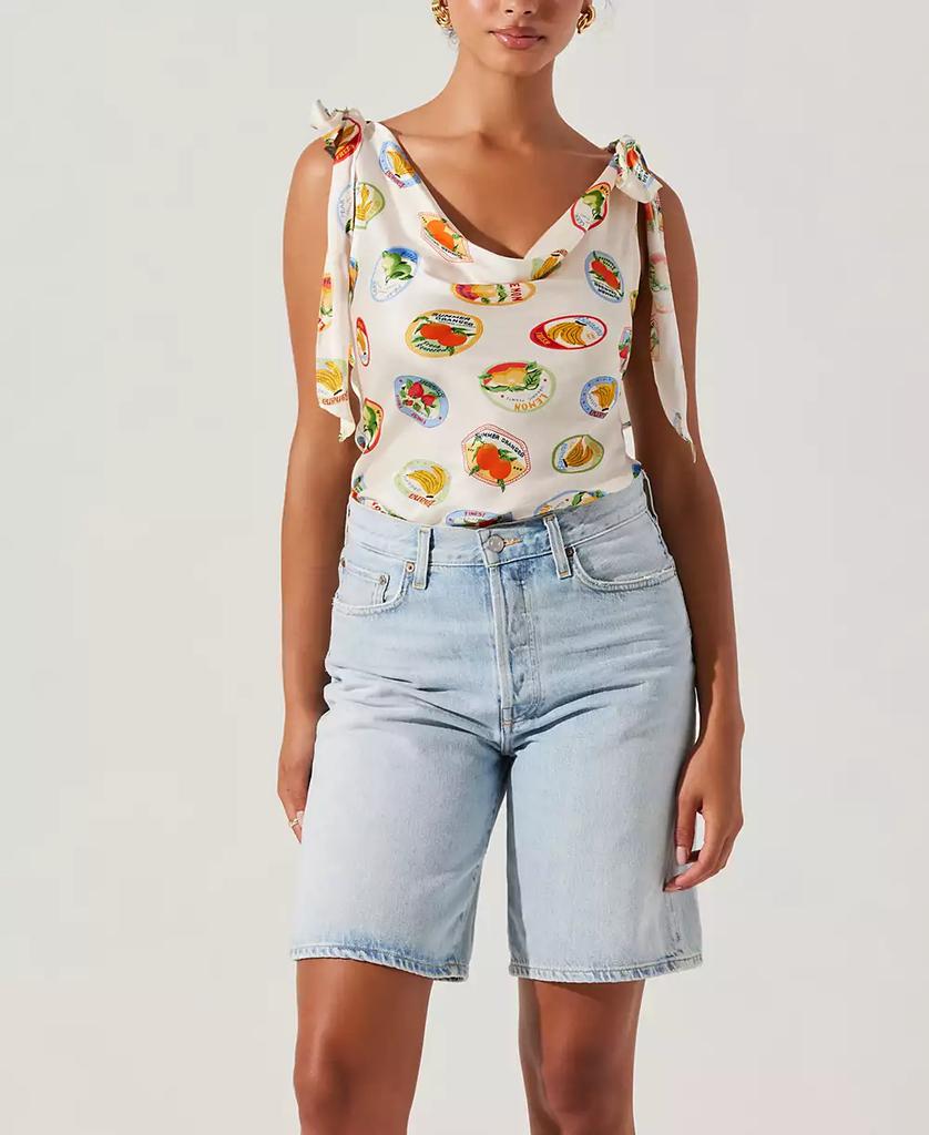 Women's Allexina Cowlneck Shoulder-Tie Top