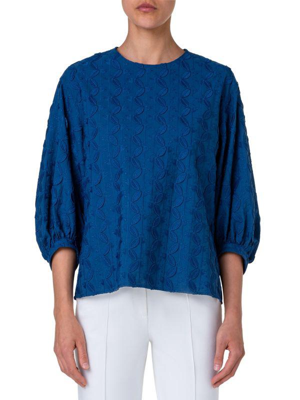 Akris Embroidered Blouson BlouseAkris Embroidered Blouson Blouse