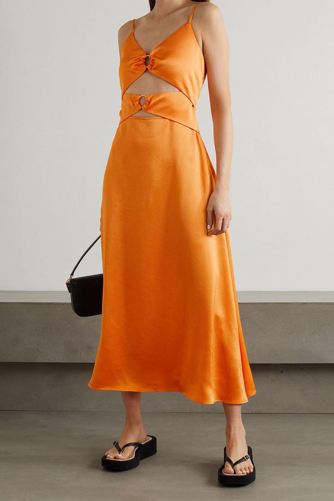 Natalia 挖剪罗纹棉质混纺超长连衣裙