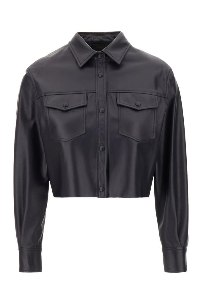Black Jacket With Shearling Trim And Zip In Leather Woman