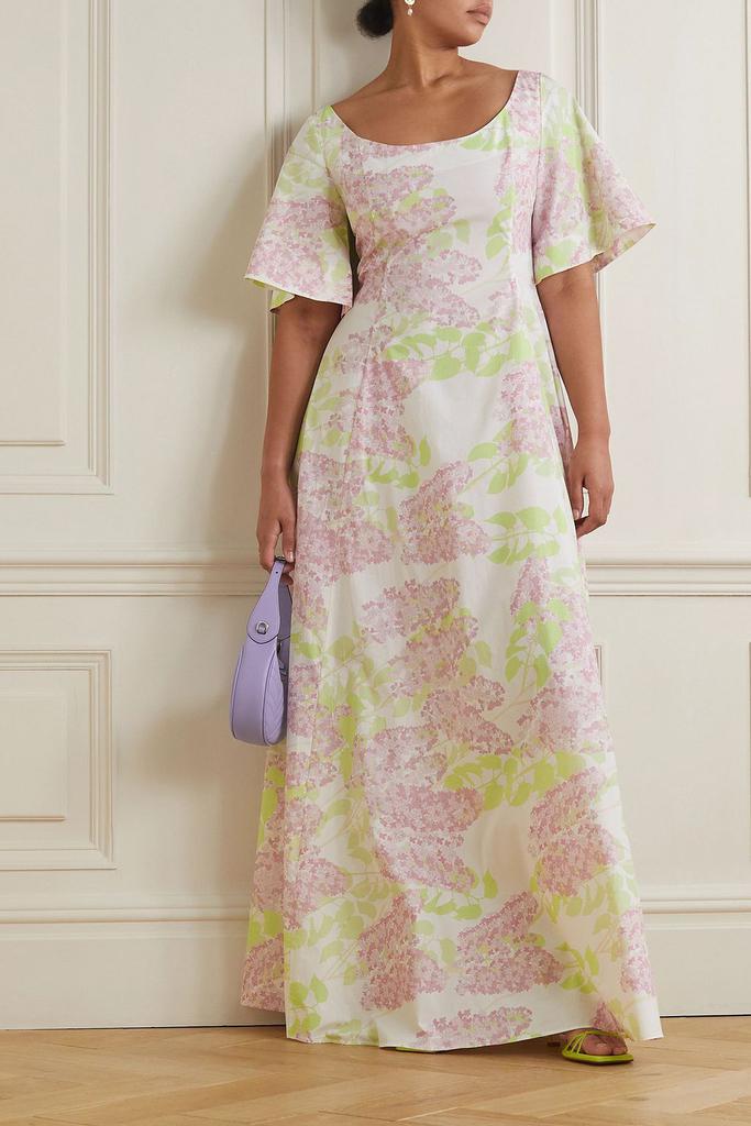 Edouard 花卉印花马海毛混纺中长半身裙