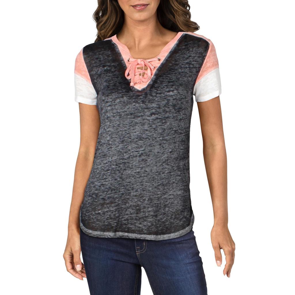 Juniors Womens Lace-Up Burn-Out T-Shirt