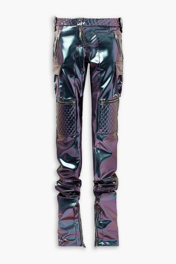 Metallic latex slim-leg pants