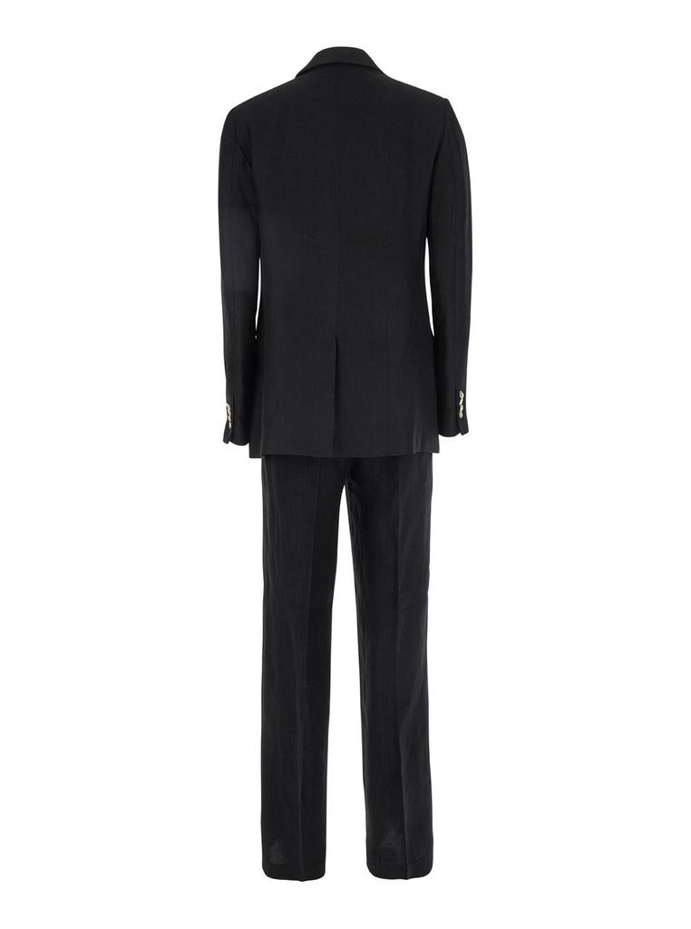 Black Double-breasted Suit With Notched Revers In Viscose And Linen Blend Woman