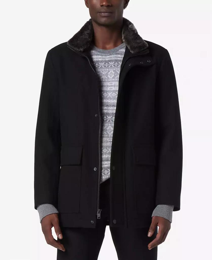 Men's Brooks Melton Wool Car Coat with Faux Fur Collar