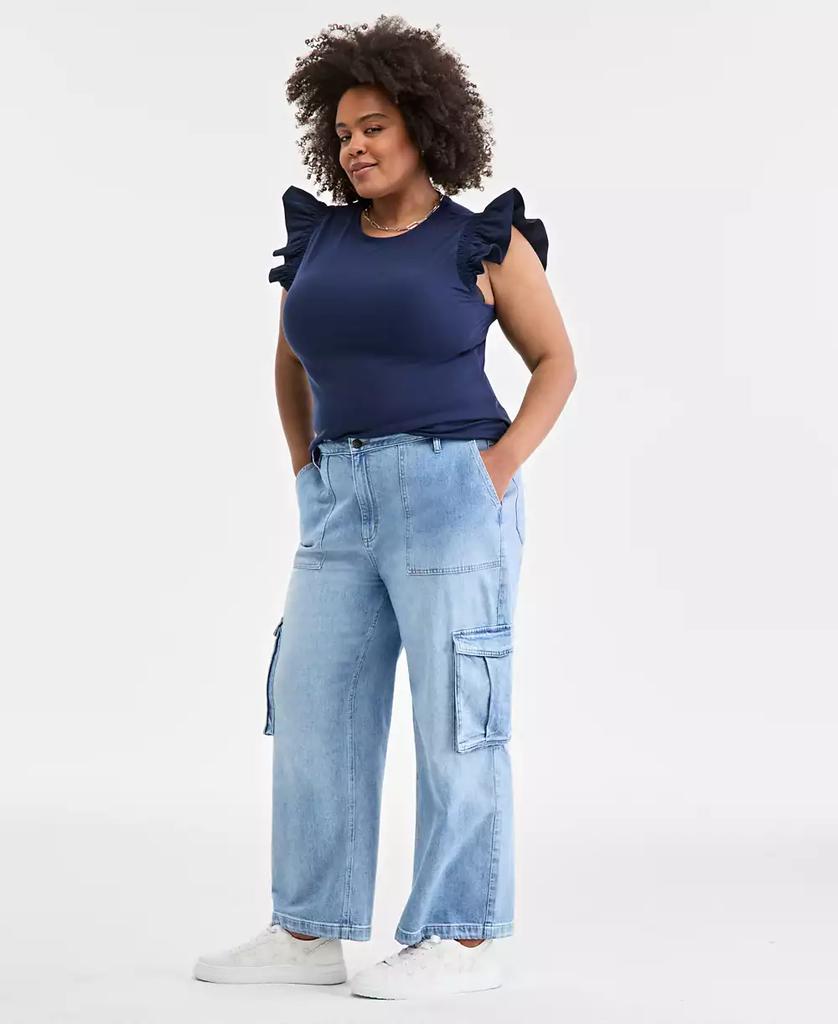 Plus Size Women's Light Wash High Rise Utility Cargo Jeans, Created for Macy's