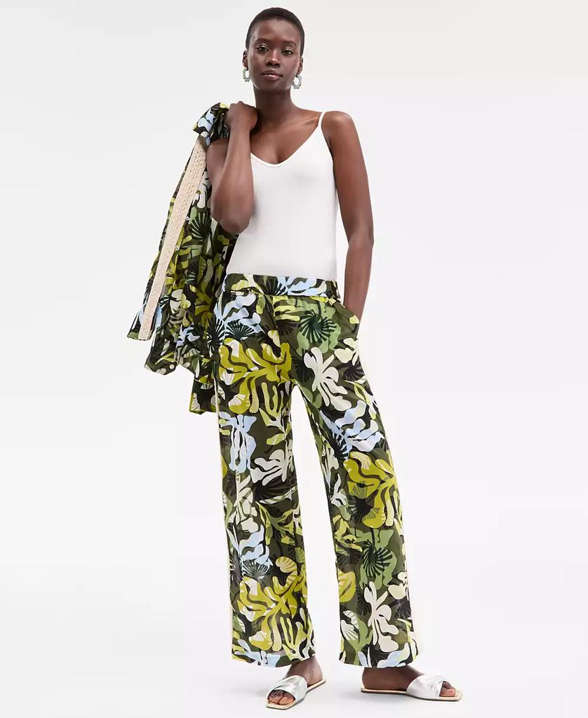 Women's Leaf-Print Crochet-Trim Wide-Leg Pants, Exclusively at Macy's