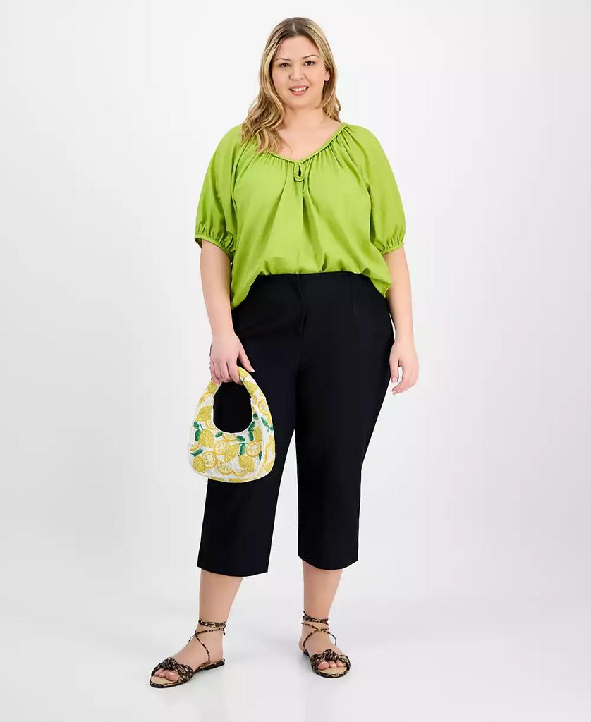 Trendy Plus Size Solid Stretch Straight-Leg Capris Pants, Exclusively at Macy's