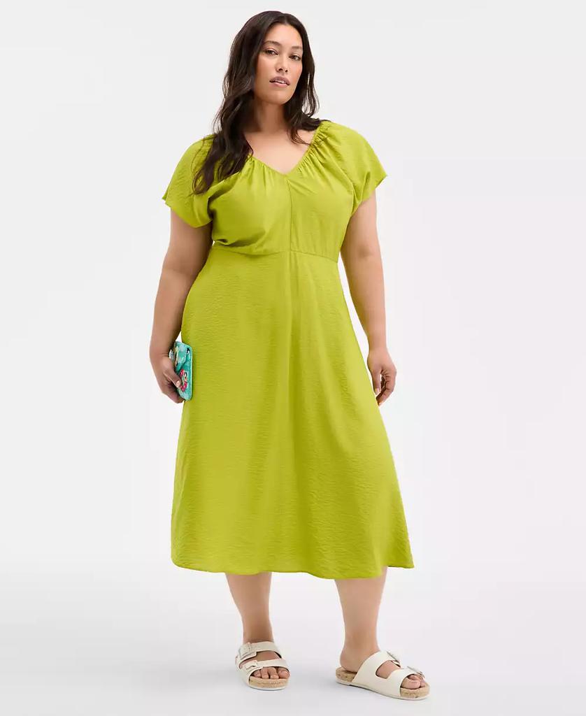 Trendy Plus Size Flutter-Sleeve Textured Satin Midi Dress, Exclusively at Macy's