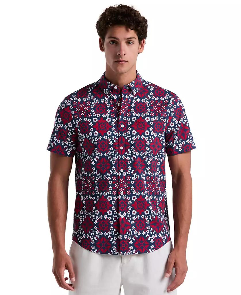 Men's Slim Fit Short Sleeve Medallion Print Button-Down Shirt