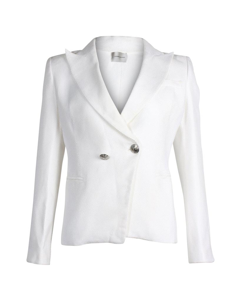 Peak Lapel Double-Breasted Blazer in White Cotton