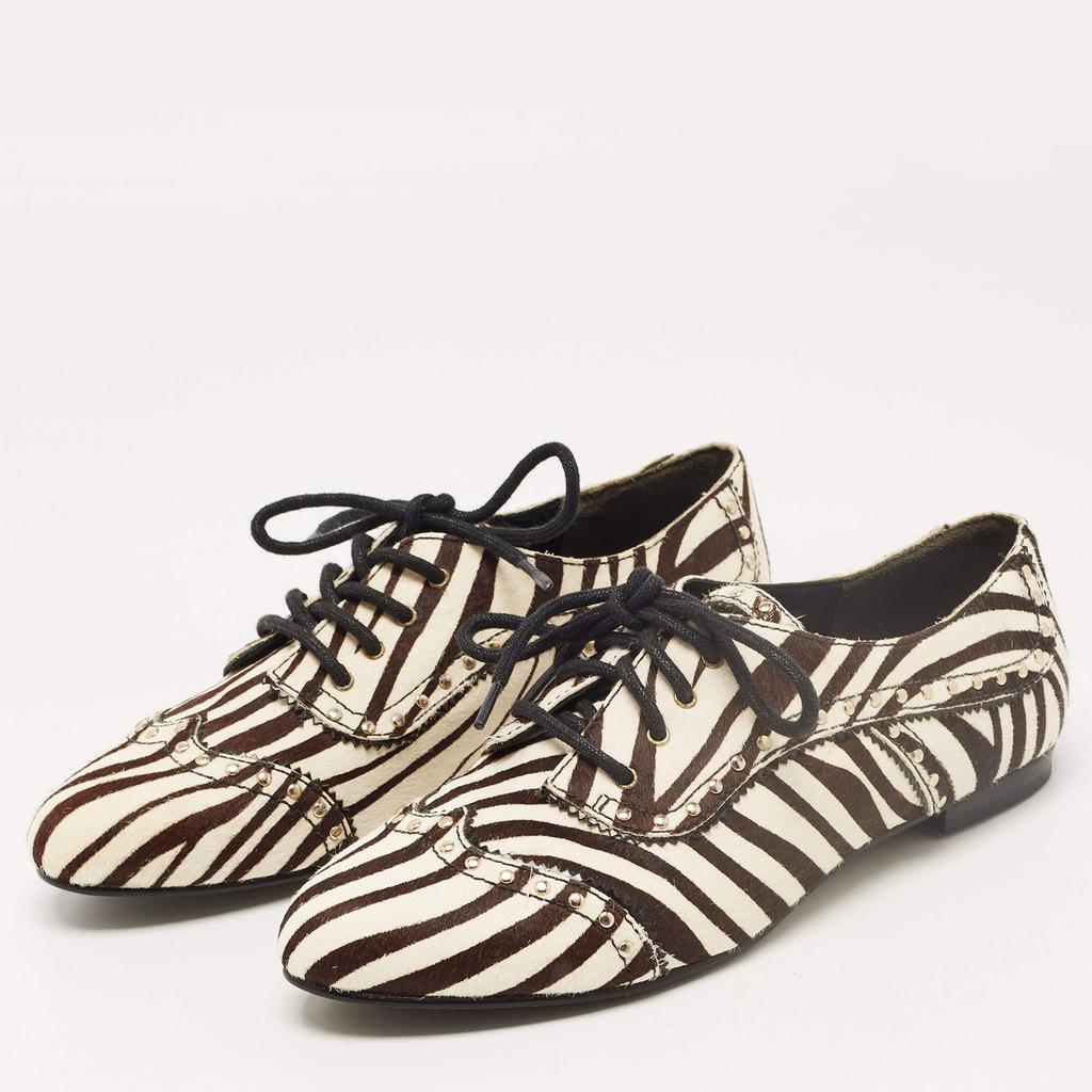 Pierre Balmain Black/ White Zebra Print Pony Hair and Leather Studded Lace Up Oxfords Size 37