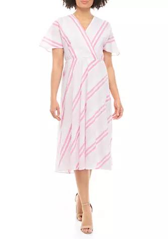 Women's V-Neck Flutter-Sleeve Midi Dress