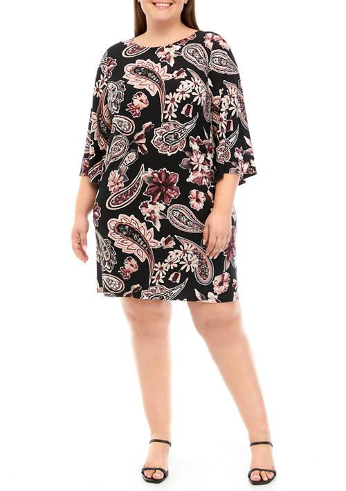 Plus Size Placed-Floral Tie-Waist Shift Dress