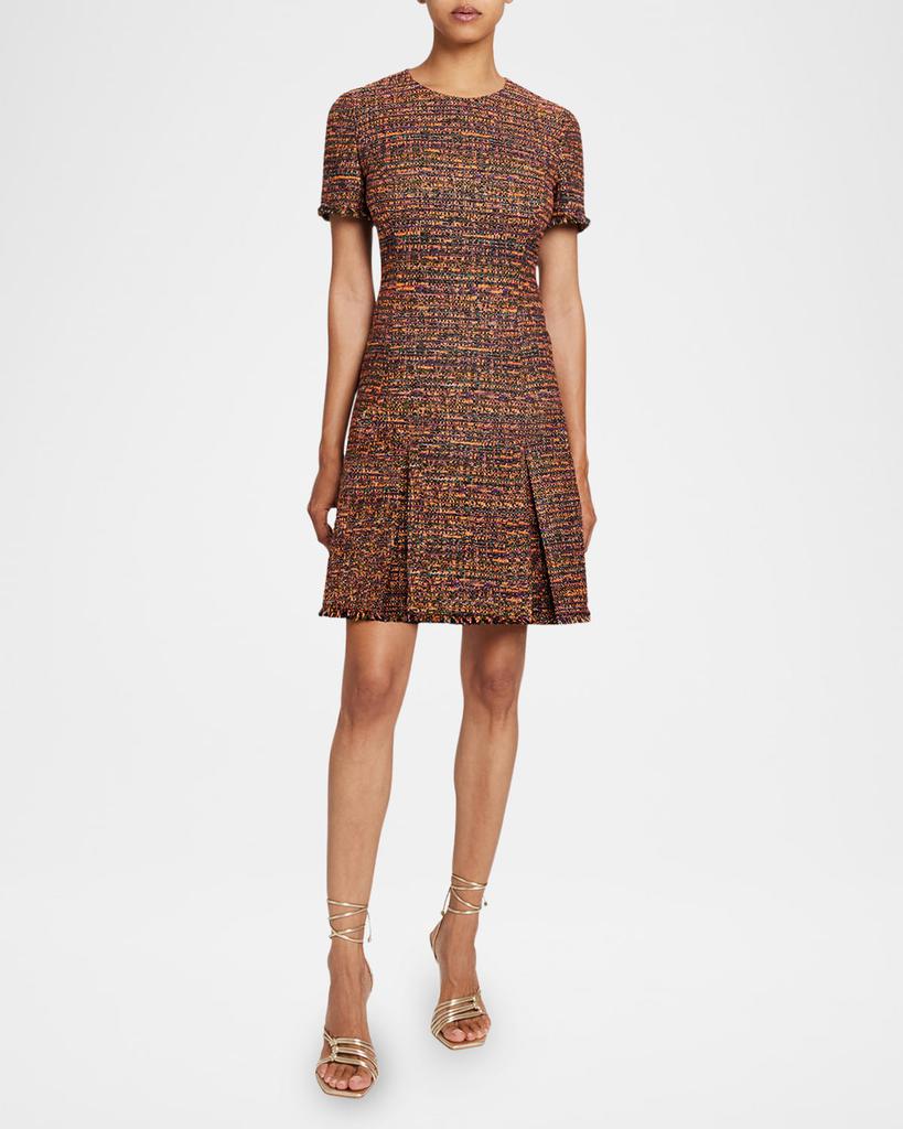 Abstract Ruffle Jewel-Neck Mini-Dress