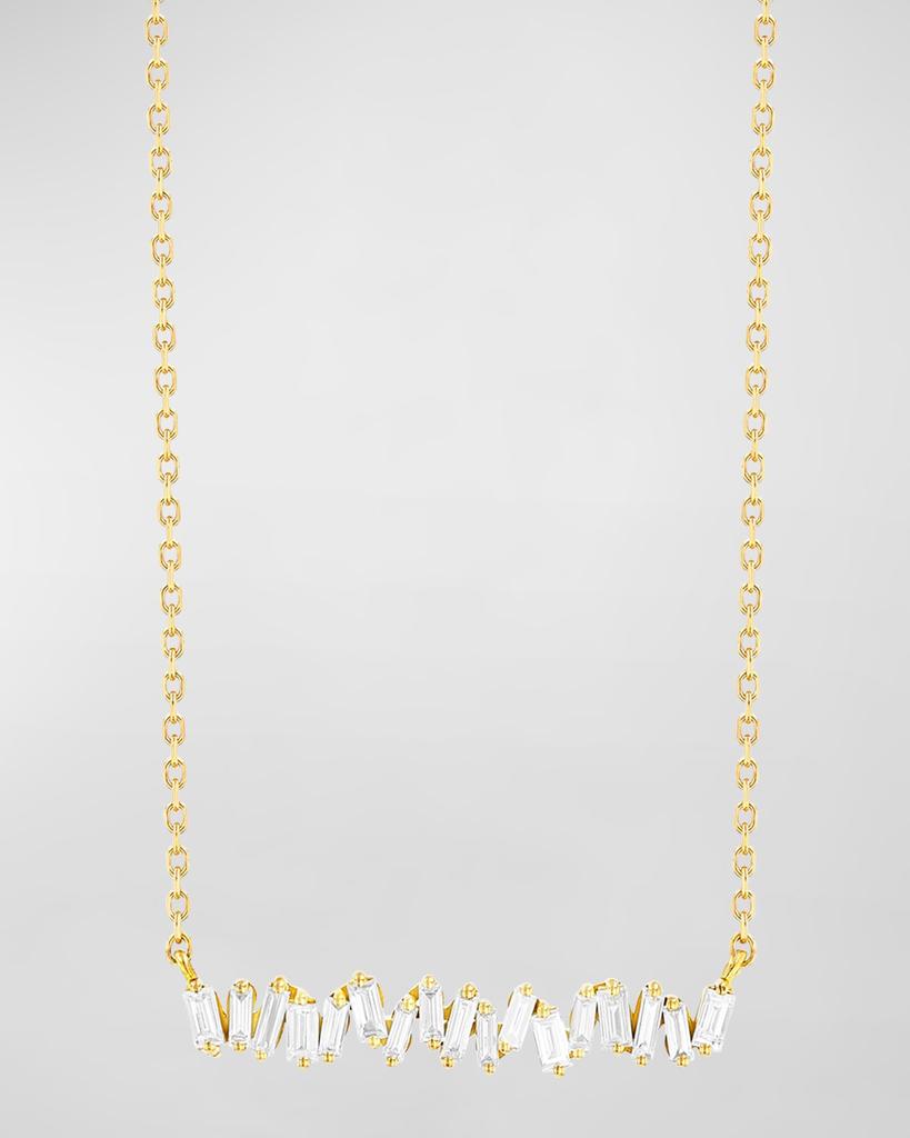 14k White Gold Classic Diamond Micro Bar Pendant Necklace