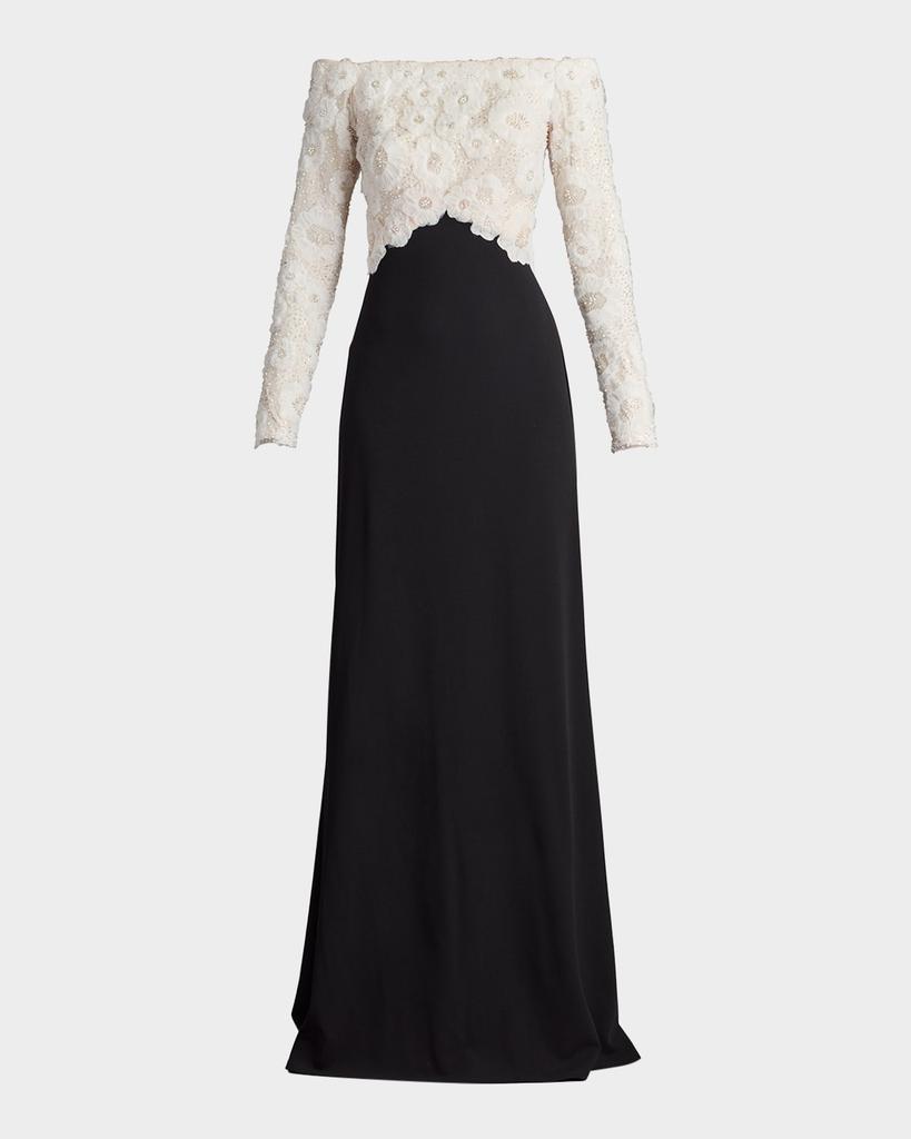 Metallic Jersey Off-the-Shoulder Column Gown