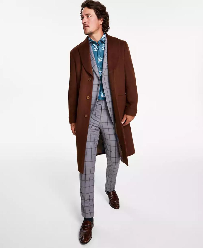 Men's Classic-Fit Medium Weight Solid Wool Blend Overcoats