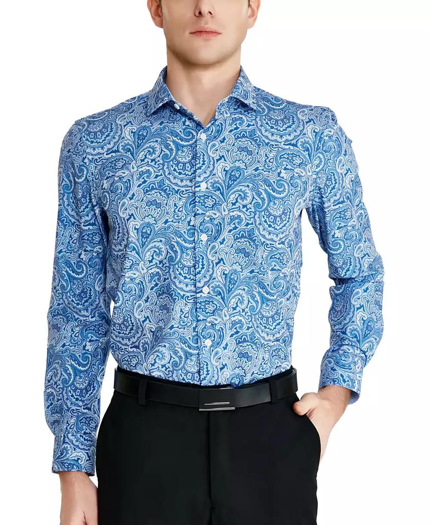 Men's Slim Flit Micro Floral Print Button-Front Dress Shirt
