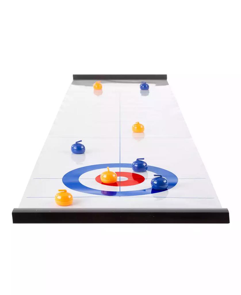 Hey Play Tabletop Curling Game - Portable Indoor Desktop Roll Up Magnetic Competition Board Game With Eight Stones