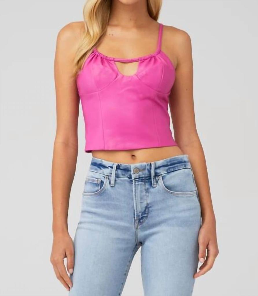 Faux Leather Cami Top In Magenta