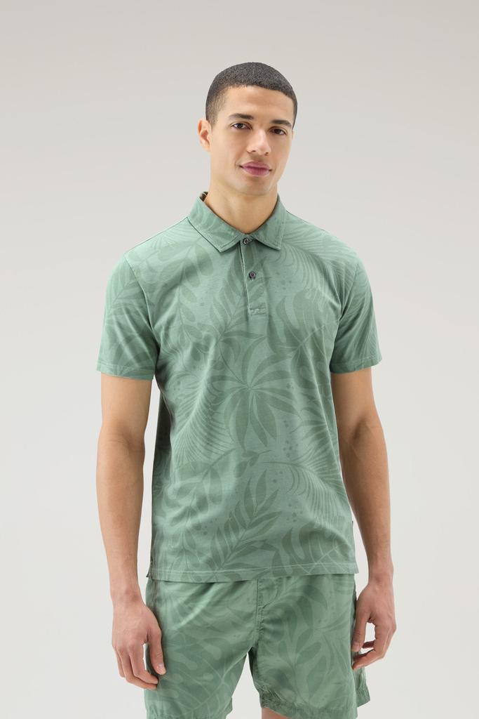 Woolrich Garment-Dyed Polo Shirt in Stretch Cotton with a Tropical Print - Men - GreenWoolrich Garment-Dyed Polo Shirt in Stretch Cotton with a Tropical Print - Men - Green
