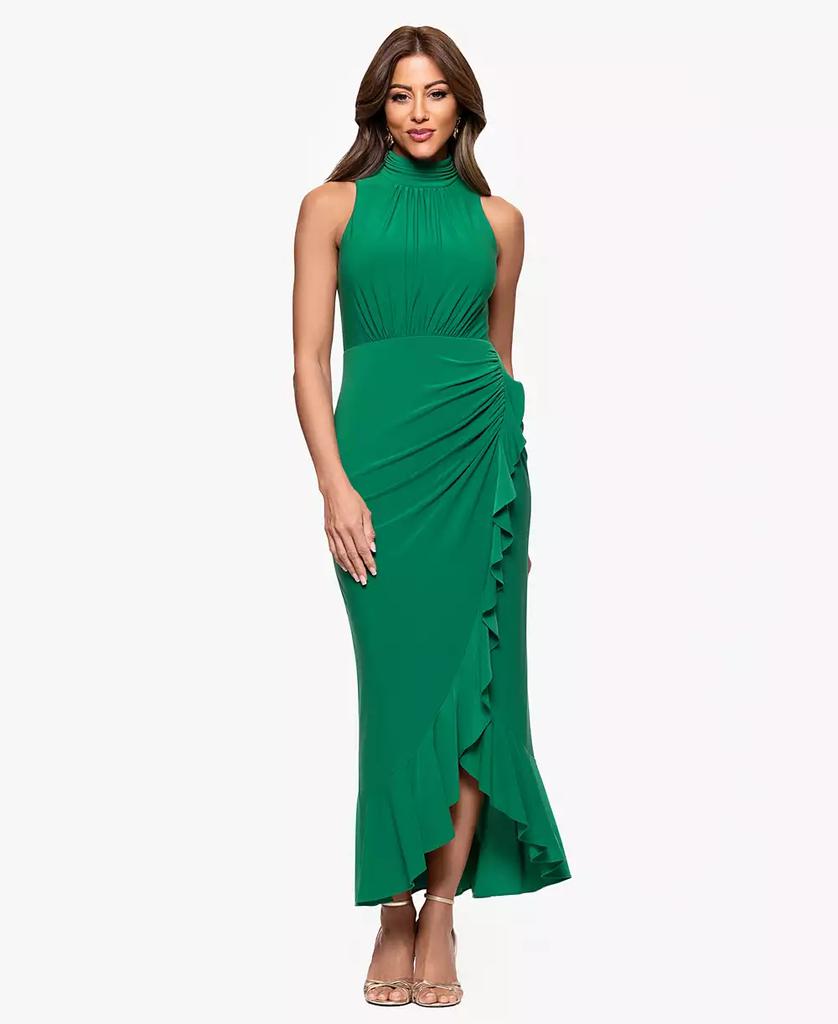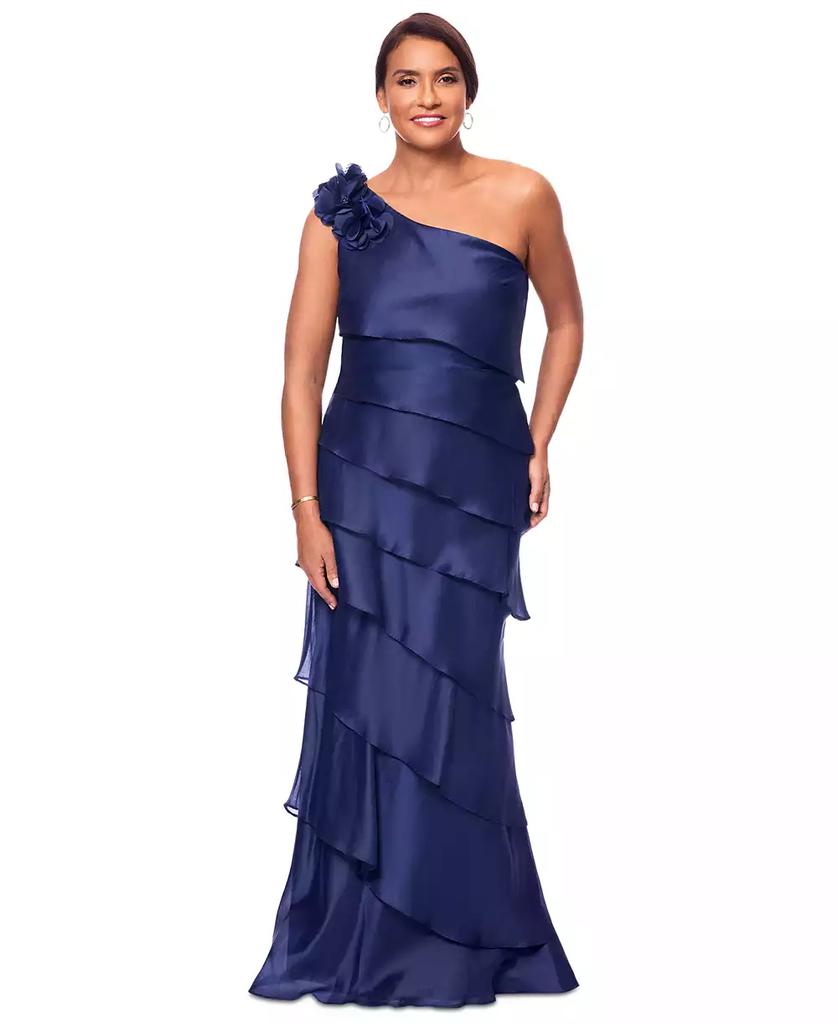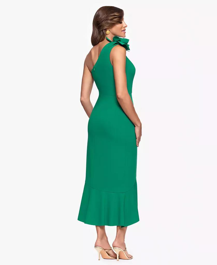 Petite Asymmetrical One-Shoulder Ruffled Midi Dress