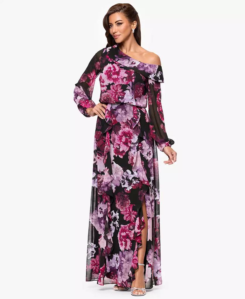 Women's Printed Asymmetrical Long-Sleeve Maxi Dress