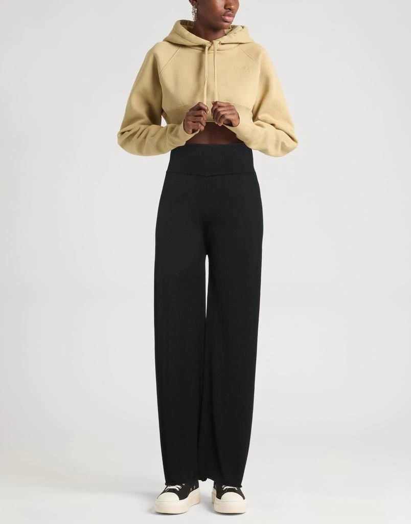 wide-leg pants, knitted, lightweight knit, solid color, no appliqués, high waisted, elasticized waist, regular fit, hand wash or dry clean, do not bleach, do not tumble dry
