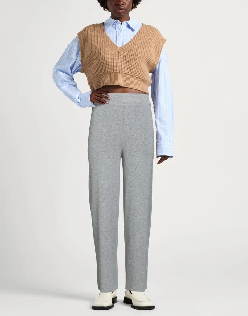 KeywordDescription: Wide-leg pants Knitted Lightweight knit Mélange No appliqués High waisted Elasticized waist Regular fit Hand wash or dry clean Do not bleach Do not tumble dry not made of fur No zip Knitted Not EAC Certified