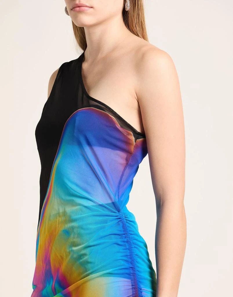 bodycon dress, tulle, tie-dyed, gathered, deep neckline, one-shoulder, stretch, do not wash, do not bleach, do not tumble dry