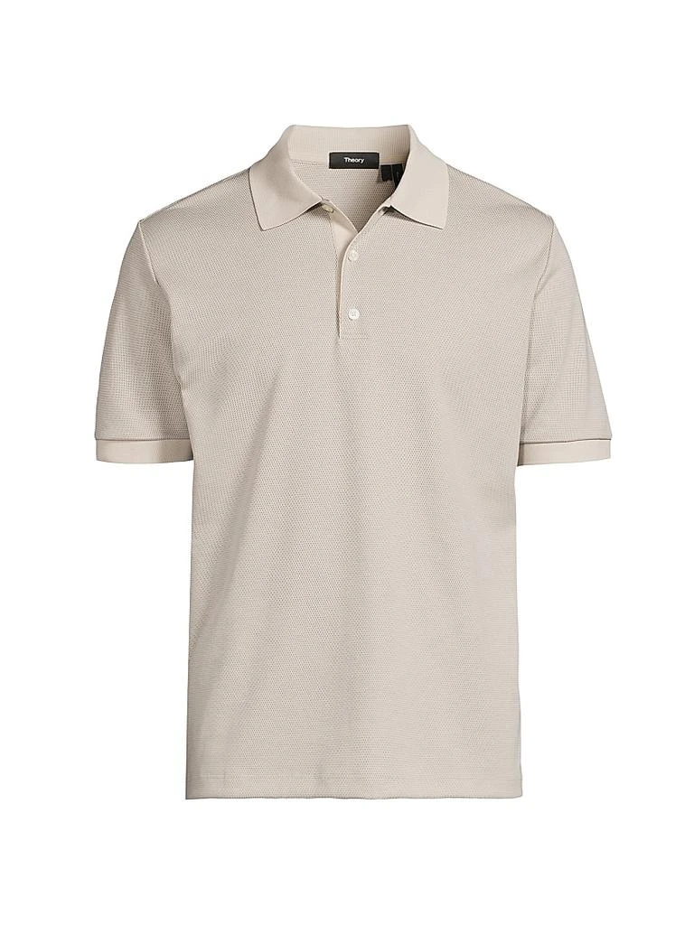Theory’s Geo Polo is crafted of stretch jacquard pima cotton in a classic silhouette with a contrast collar and cuffs.Polo collarShort sleevesThree-button placket56% pima cotton/44% polyesterMachine washImportedSIZE & FITAbout 24” from shoulder to hemModel measurements: 6’2” tall, 40” chest, 31” waistModel is wearing a US size MediumABOUT THE BRANDFor two decades, Theory has nailed the art of polished dressing through its well-tailored pieces. Innovative fabrications and an elevated, minimalist aesthetic make the brand's separates a wardrobe main story season after season.